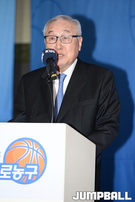 [점프볼=청담/유용우 기자] 19일 청담동 리베라 호텔에서 열린 '16-17 KCC 프로농구 미디어데이' KBL 김영기 총재가 인사말을 하고 있다.