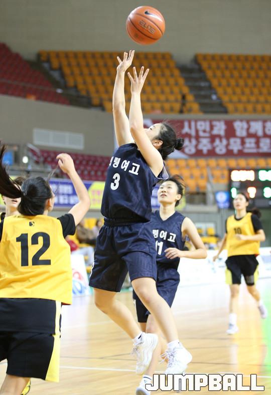31일 경북 상주 실내체육관에서 열린 제9회 전국학교 스포츠클럽 농구대회 여고부 결승전 의령여고와 온양여고의 경기에서 의령여고가 30-15로 승리를 거두고 우승을 차지했다.