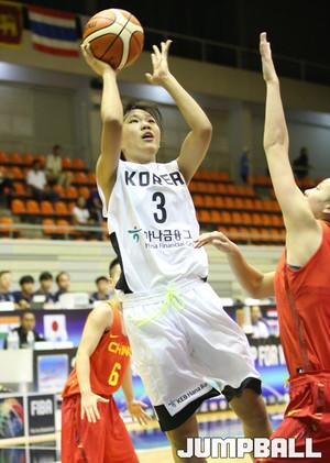 14일 태국 방콕 유스 센터에서 열린 2016 FIBA 아시아 U18여자농구대회 예선 이틀째 경기에서 한국 U18여자농구대표팀의 차지현이 외곽에서 볼을 돌리다 눈 깜짝할 찰라에 돌파 공격을 시도하고 있다.