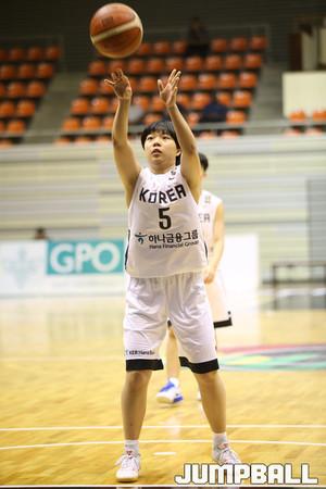 15일 태국 방콕 유스 센터에서 열린 2016 FIBA 아시아 U18여자 농구대회 예선전 사흘 째 경기, 한국의 박지수가 상대 수비를 뚫고 언더슛을 던지고 있다.