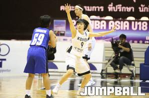19일 태국 방콕 유스 센터에서 열린 2016 FIBA 아시아 U18여자농구대회 준결승전에서 한국 대표팀의 김민정이 박지수의 돌파에 이은 패스를 받아 중거리슛으로 득점으로 연결시키고 있다.