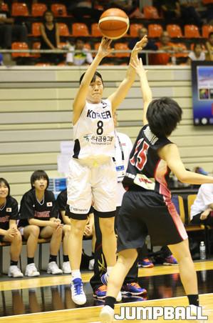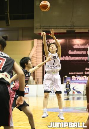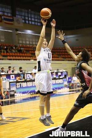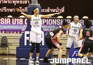 19일 태국 방콕 유스 센터에서 열린 2016 FIBA 아시아 U18여자농구대회 준결승전에서 한국 대표팀의 박지수가 상대의 집중 수비 속에서 과감한 일대일 공격으로 득점을 만들어 내고 있다.