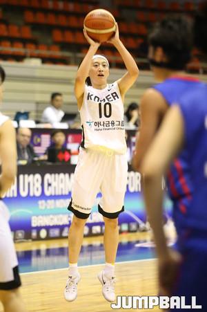 20일 태국 방콕 유스 센터에서 열린 2016 FIBA 아시아 U18여자농구 대회 대만과의 3-4위전에서 박지수가 빠진 자리를 메운 박지현이 과감하게 골밑 공략에 나서고 있다.