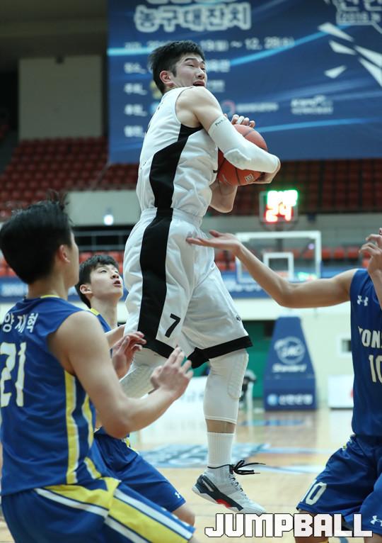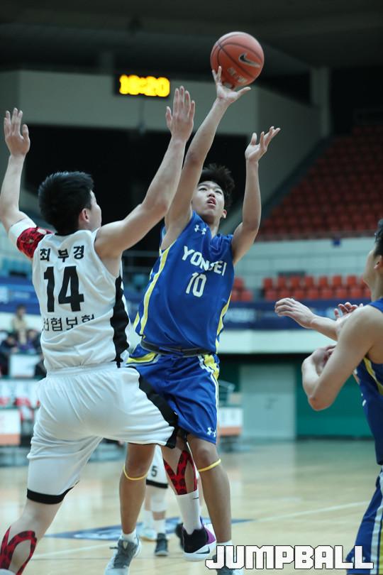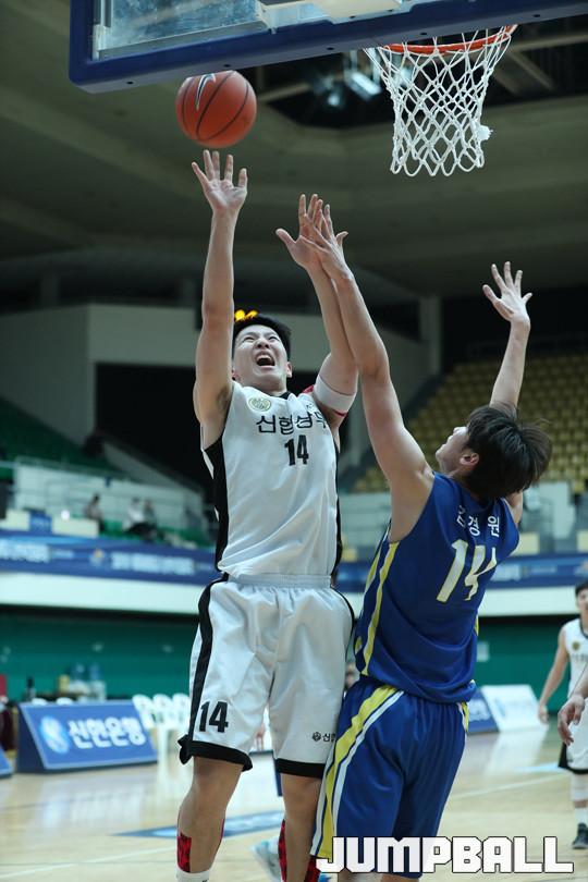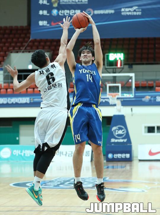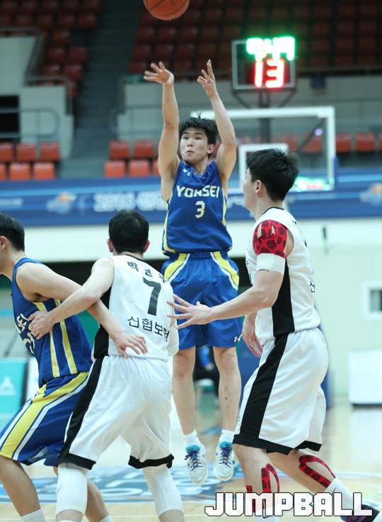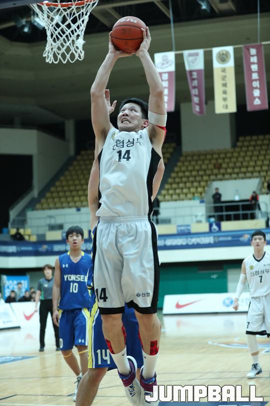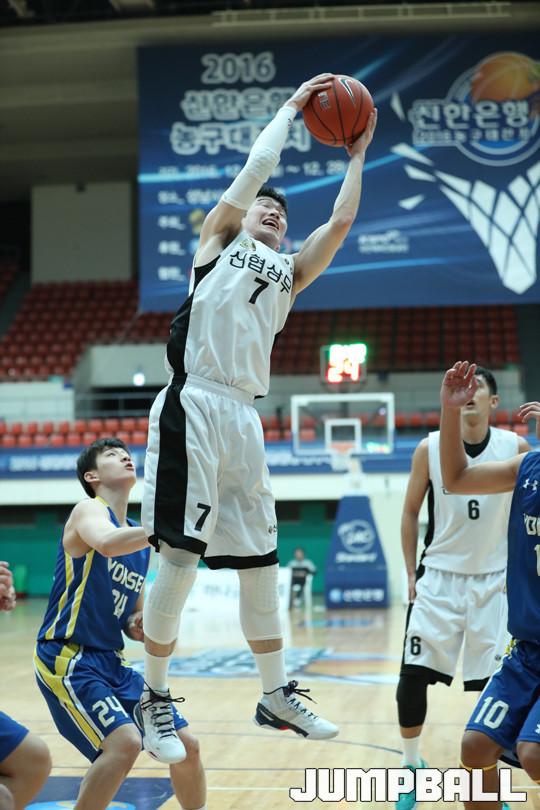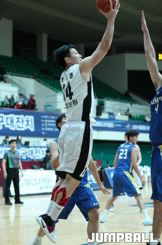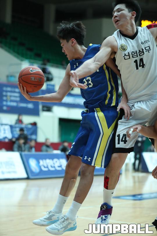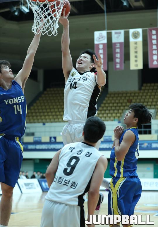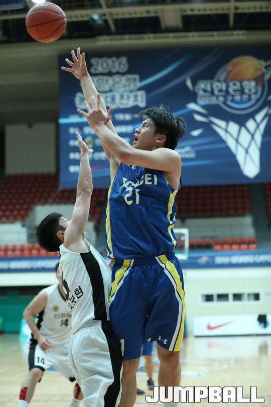 24일 경기 성남실내체육관에서 열린 2016 신한은행 농구대잔치 남자부 신협상무와 연세대의 경기에서 프로출신으로 구성된 신협상무가 81-69로 연세대를 꺾고 조1위를 차지했다.