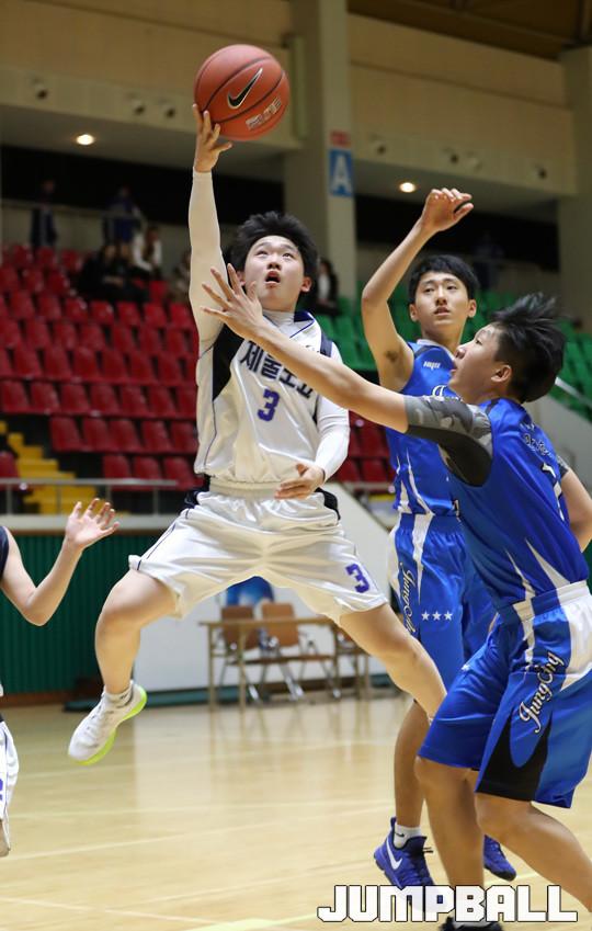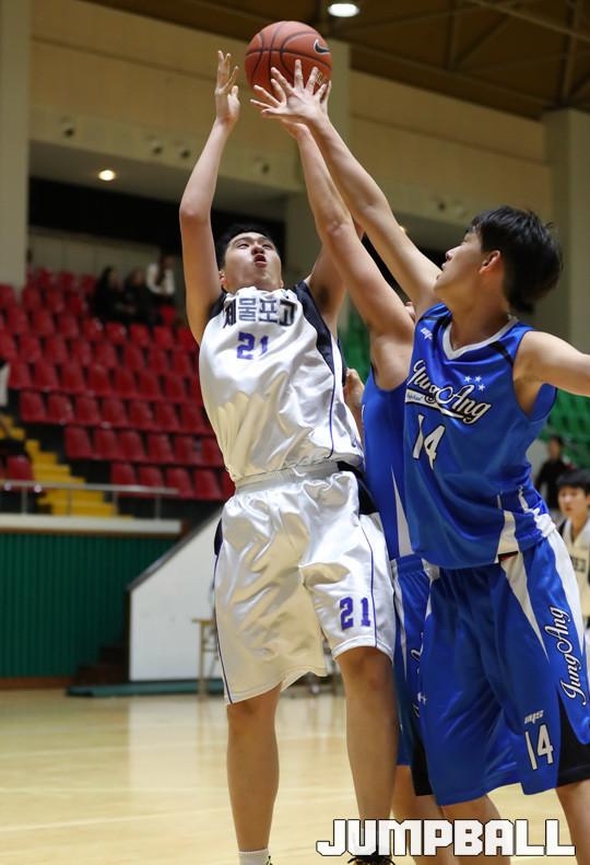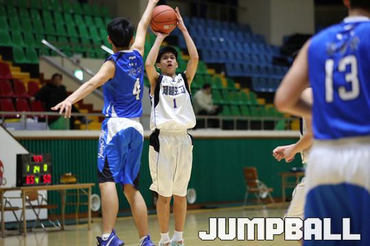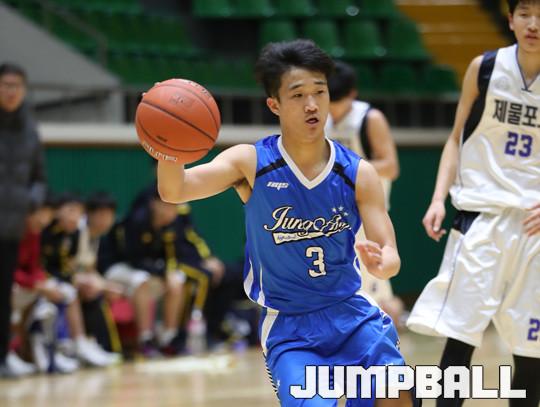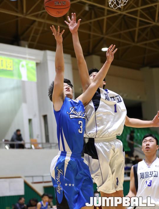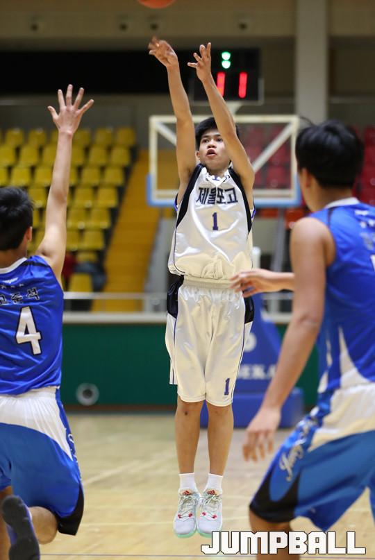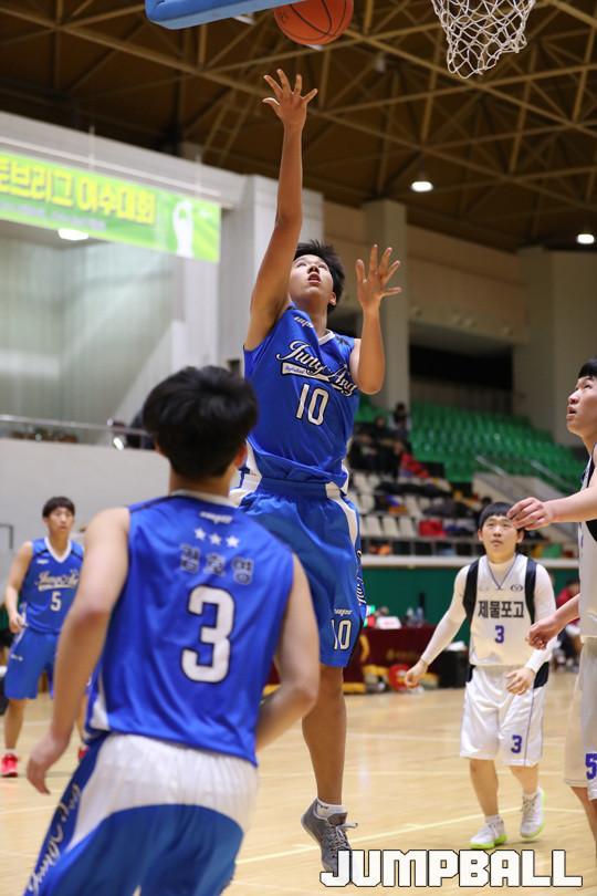 11일 여수 흥국 체육관에서 열린 2017 우수고교 초청 여수 스토브리그 남고부 경기에서 제물포고가 3점슛 7개를 포함해 23점을 기록한 김승재의 맹활약에 힘입어 서명진이 부상으로 빠진 부산중앙고에 89-56으로 승리를 거뒀다.