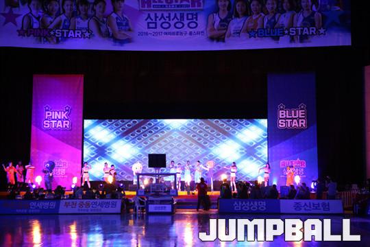 15일 용인실내체육관에서 열린 2016-2017 여자프로농구 올스타전 공식 시작에 앞서 무대에서 출전 선수들의 댄스타임이 열렸다.