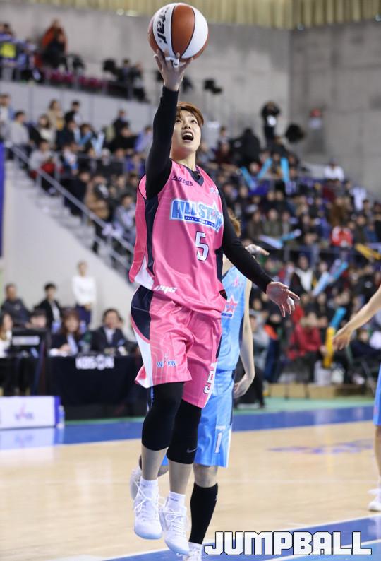 15일 용인실내체육관에서 열린 2016-2017 여자프로농구 올스타전, 핑스크사와 블루스타의 메인 경기에서 핑크스타 이경은이 스틸에 이어 속공으로 득점을 만들고 있다.
