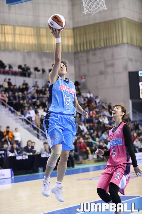 15일 용인실내체육관에서 열린 2016-2017 여자프로농구 올스타전, 블루스타의 김단비가 빠른 스피드를 이용해 레이업슛으로 속공을 마무리 짓고 있다.