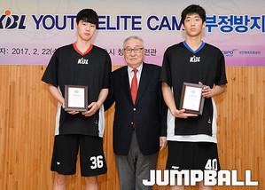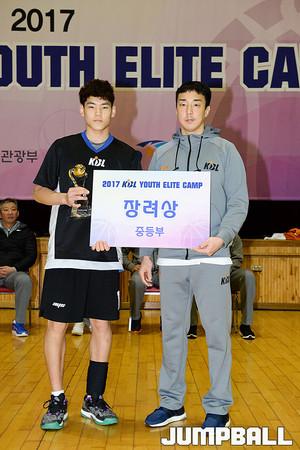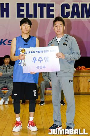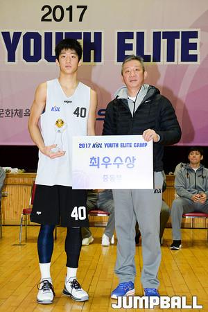 24일 속초 실내체육관에서 열린 2017 KBL 엘리트 유스캠프 고등부 마지막 날, 마지막 점검을 위해 나선 연습 경기에서 사력을 다하고 있는 선수들의 모습.
