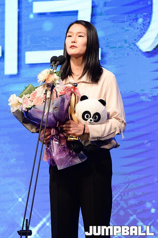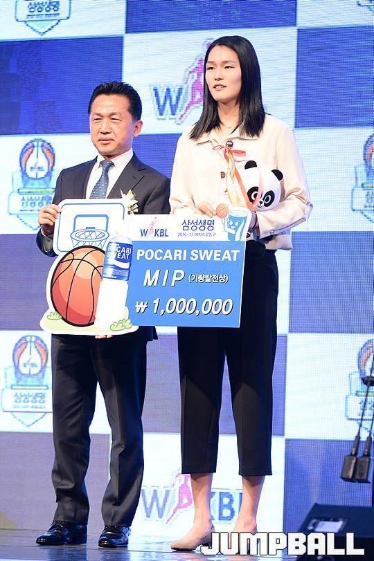 [점프볼=양재/유용우 기자] 07일 양재동 더케이호텔(구, 교육문화회관) 컨벤션센터 2층 그랜드 볼룸에서 '삼성생명 16-17 여자프로농구 정규리그 시상식'이 개최되었다.우리은행 최은실이 포카리스웨트 MIP상을 수상하였다.
