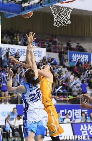 10일 용인실내체육관에서 열린 삼성생명 2016-2017 여자프로농구 플레이오프 1차전으로 삼성생명과 KB스타즈의 경기에서 KB스타즈 피어슨이 중거리슛을 시도하고 있다.