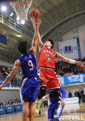 [점프볼=수원/유용우 기자] 15일 성균관대 자연과학캠퍼스 체육관에서 열린 '2017 남녀대학농구리그' 성균관대와 명지대의 경기, 성균관대 최희철이 레이업을 올리고 있다.