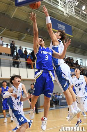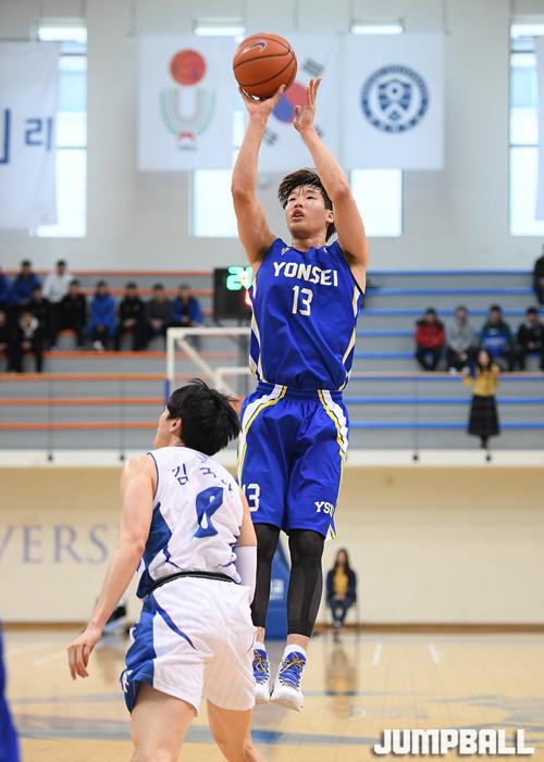 16일 연세대학교 체육관에서 열린 2017 남녀 대학농구리그에서 연세대와 중앙대의 경기, 연세대 김진용이 거침없이 중거리슛을 던지고 있다.
