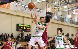 17일 경희대학교 열린 2017 남녀 대학농구리그에서 경희대와 건국대의 경기, 경희대 이건희가 사이드에서 골밑을 파고들어 레이업을 시도하고 있다.