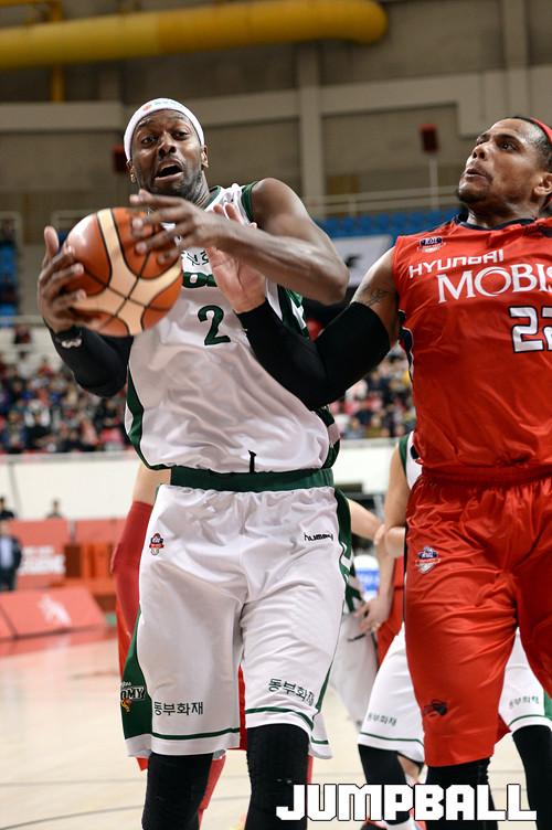 19일 울산 동천 체육관에서 열린 '16-17 KCC 프로농구' 울산 모비스 와 원주 동부 의 경기, 동부 벤슨과 모비스 밀러가 리바운드 다툼을 하고있다.