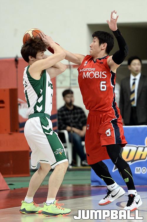 19일 울산 동천 체육관에서 열린 '16-17 KCC 프로농구' 울산 모비스 와 원주 동부 의 경기, 모비스 양동근이 동부 김현오희 공을 가로채기 하고있다.