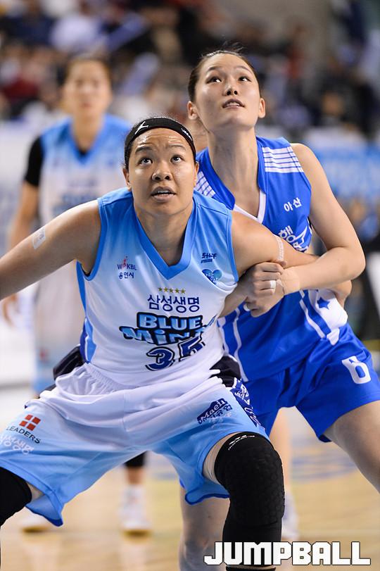 [점프볼=용인/유용우 기자] 20일 용인 실내체육관에서 진행된 '삼성생명 2016-2017 여자프로농구' 챔피언결정전 3차전 삼성생명과 아산 우리은행의 경기, 우리은행 최은실과 삼성생명 김한별이 리바운드를 위해 몸싸움을 하고 있다.
