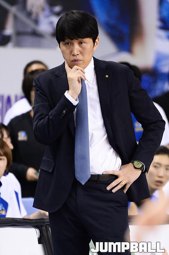 [점프볼=용인/유용우 기자] 20일 용인 실내체육관에서 진행된 '삼성생명 2016-2017 여자프로농구' 챔피언결정전 3차전 삼성생명과 아산 우리은행의 경기, 우리은행 위성우 감독이 경기를 지켜보고 있다.