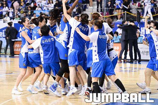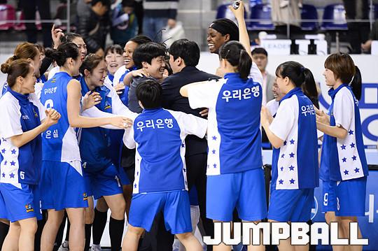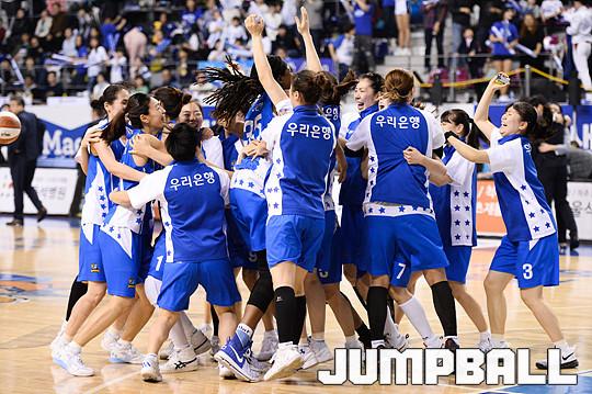[점프볼=용인/유용우 기자] 20일 용인 실내체육관에서 진행된 '삼성생명 2016-2017 여자프로농구' 챔피언결정전 3차전 삼성생명과 아산 우리은행의 경기, 우리은행이 83-72로 승리하며 통합 5연패를 달성하였다.