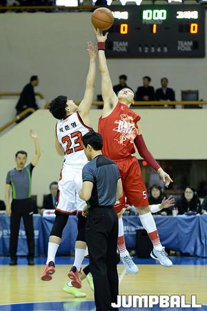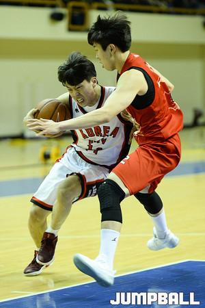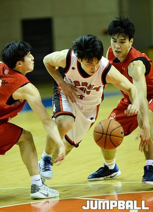 [점프볼=천안/유용우 기자] 23일 단국대 천안캠퍼스 체육관에서 열린 '2017 남녀대학농구리그' 단국대와 고려대의 경기, 고려대 박준영이 돌파를 하고 있다.
