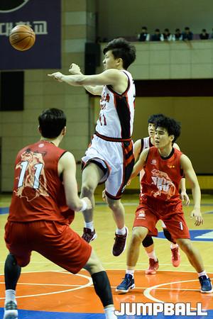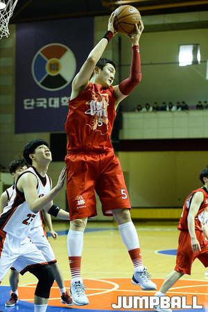 [점프볼=천안/유용우 기자] 23일 단국대 천안캠퍼스 체육관에서 열린 '2017 남녀대학농구리그' 단국대와 고려대의 경기, 고려대 박정현이 수비 리바운드를 잡고 있다.