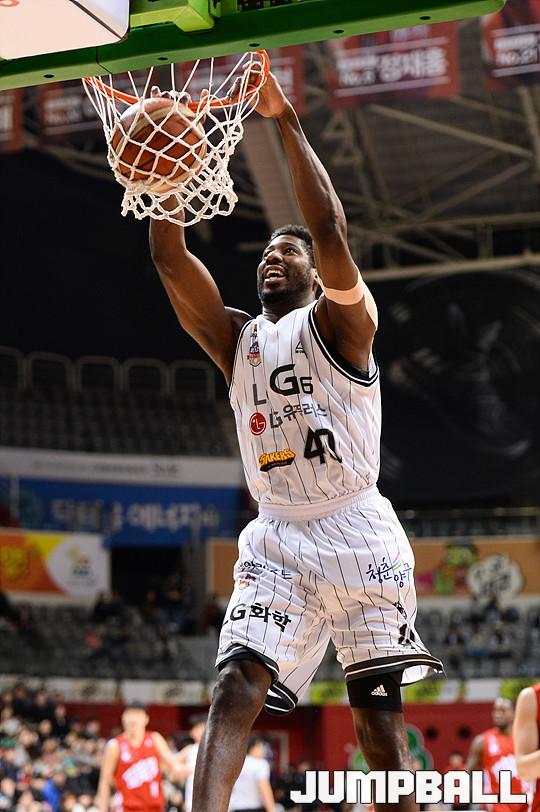 [점프볼=고양/유용우 기자] 26일 고양 실내체육관에서 열린 '16-17 KCC 프로농구' 고양 오리온과 창원 LG의 경기, LG 메이스가 덩크를 성공하고 있다.
