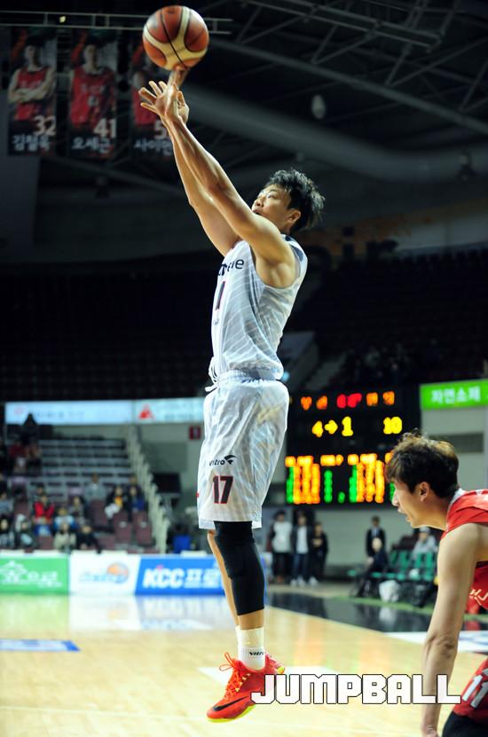 26일 안양실내체육관에서 열린 '16-17 KCC 프로농구' 안양 KGC와 부산 케이티의 경기에서, 케이티 김영환이 점프슛을 시도하고 있다.