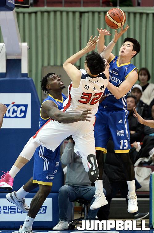 26일 잠실 실내체육관에서 열린 '16-17 KCC 프로농구' 서울 삼성 과 울산 모비스 의 경기, 삼성 임동섭과 라틀리프가 모비스 이종현을 수비하고있다.