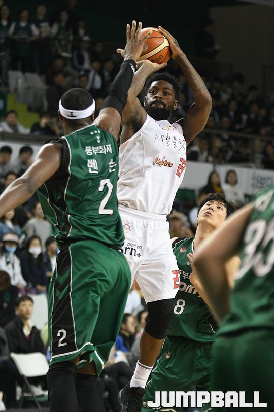 26일 원주종합체육관에서 열린 '16-17 KCC프로농구 원주 동부 와 서울 SK 의 경기에서 테리코 화이트가 점프슛을 시도하고 있다.