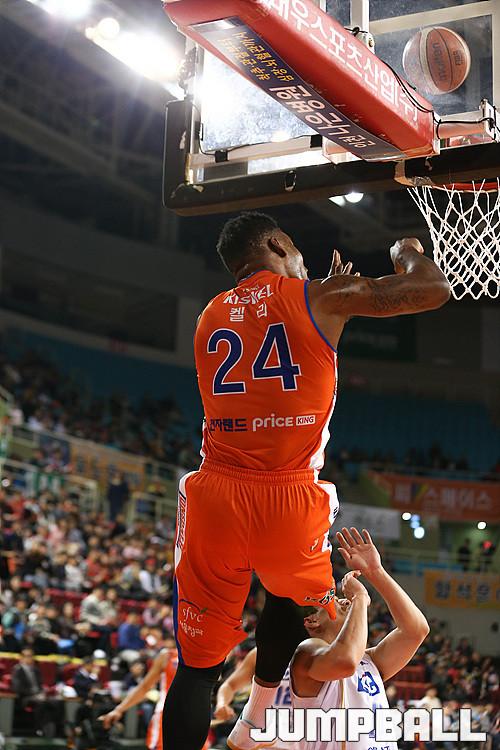 [점프볼=인천/한명석 기자] 26일 인천삼산월드체육관에서 열린 '16-17 KCC 프로농구' 인천 전자랜드와 전주 KCC와의 경기에서 인천 전자랜드 켈리 선수 엘리웁 패스가 잘 안되어 득점으로 마무리를 못하고 있다.