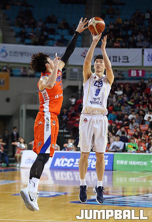 [점프볼=인천/한명석 기자] 26일 인천삼산월드체육관에서 열린 '16-17 KCC 프로농구' 인천 전자랜드와 전주 KCC와의 경기에서 전주 KCC 정휘량 선수가 오픈 찬스를 이용해서 3점 슛을 시도하고 있다.