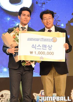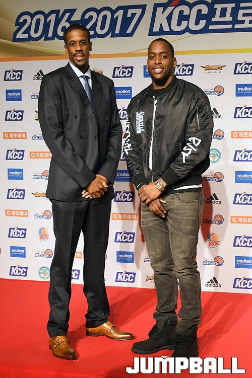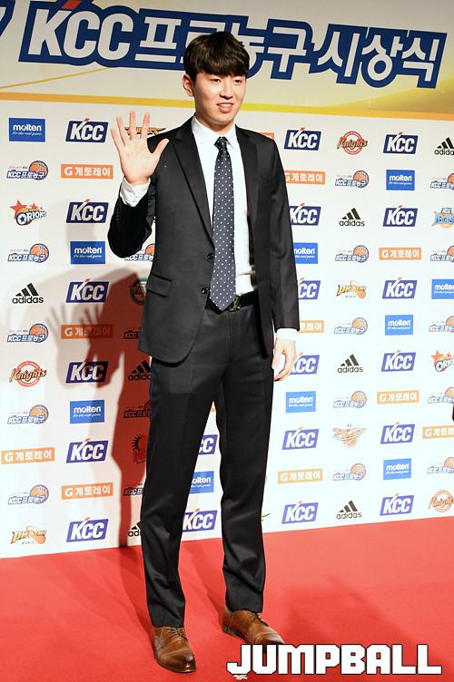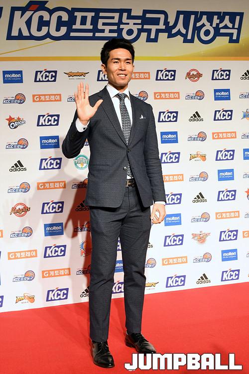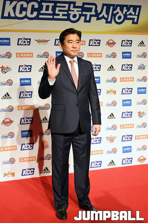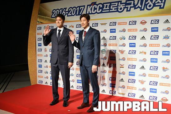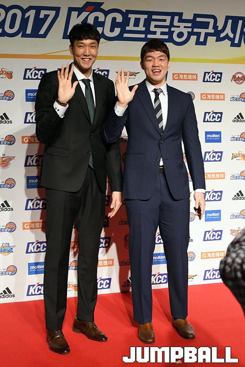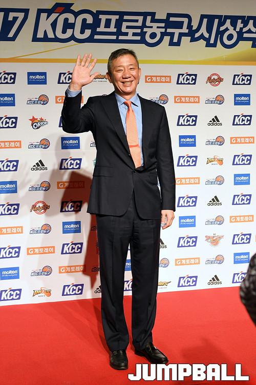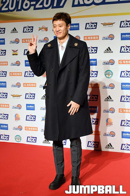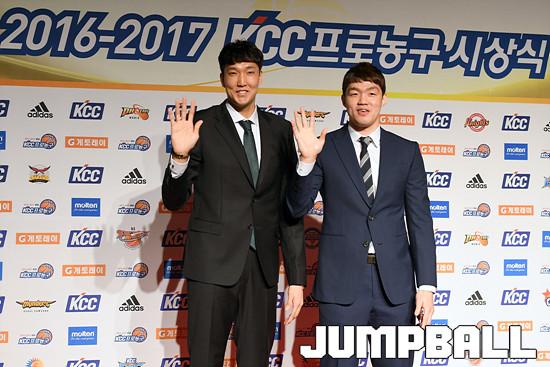 27일 그랜드 하얏트 호텔 그랜드볼룸에서 열린 '16-17 KCC 프로농구 시상식', 시상식에 앞서 감독, 선수들이 포토월에서 포즈를 취하고 있다.