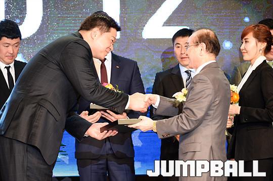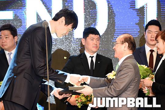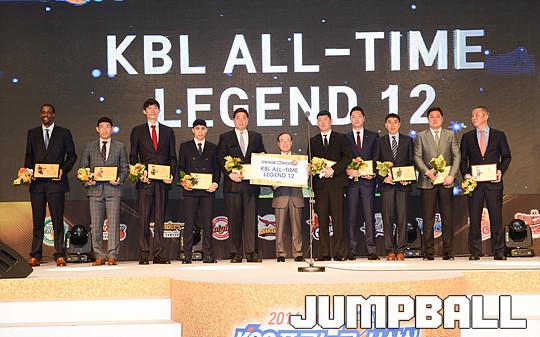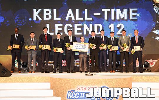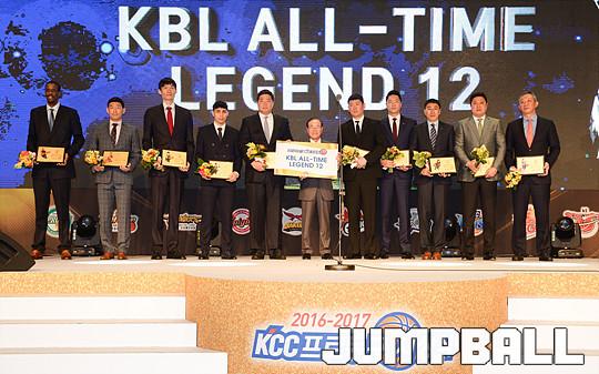 [점프볼=용산/유용우 기자] 27일 그랜드 하얏트 호텔 그랜드볼룸에서 열린 '16-17 KCC 프로농구 시상식' KBL ALL-TIME 레전드 12 수상에 이어 단체촬영을 진행하고 있다.