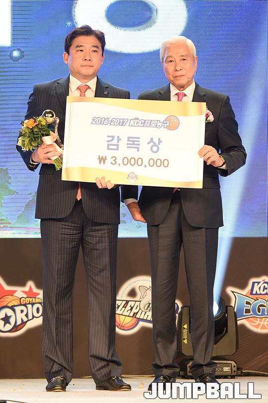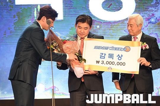 [점프볼=용산/유용우 기자] 27일 그랜드 하얏트 호텔 그랜드볼룸에서 열린 '16-17 KCC 프로농구 시상식' KGC 인삼공사 김승기 감독이 감독상을 수상하고 있다.