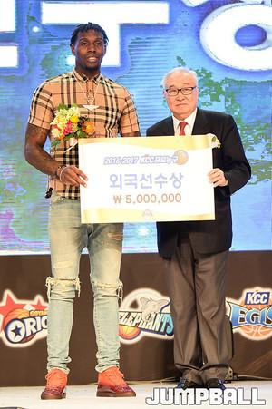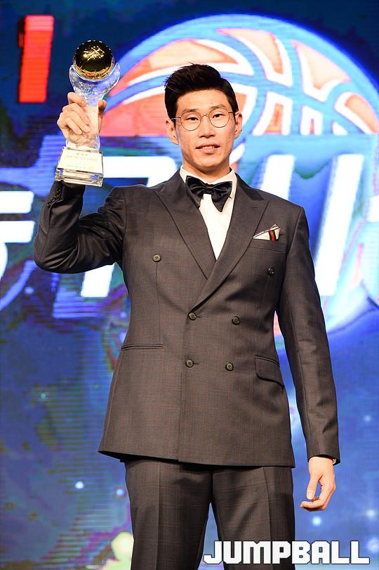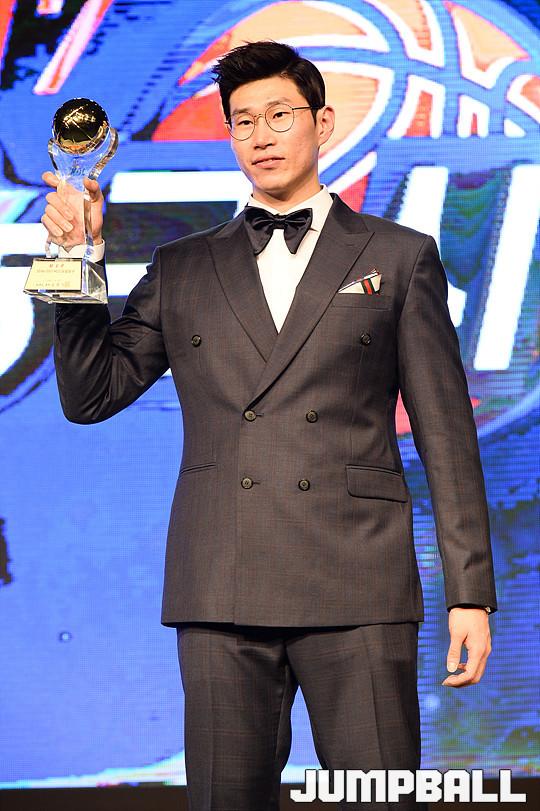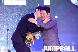 [점프볼=용산/유용우 기자] 27일 그랜드 하얏트 호텔 그랜드볼룸에서 열린 '16-17 KCC 프로농구 시상식'에서 KGC 인삼공사 오세근이 MVP를 수상하였다.오세근이 기념촬영에 임하고 있다.