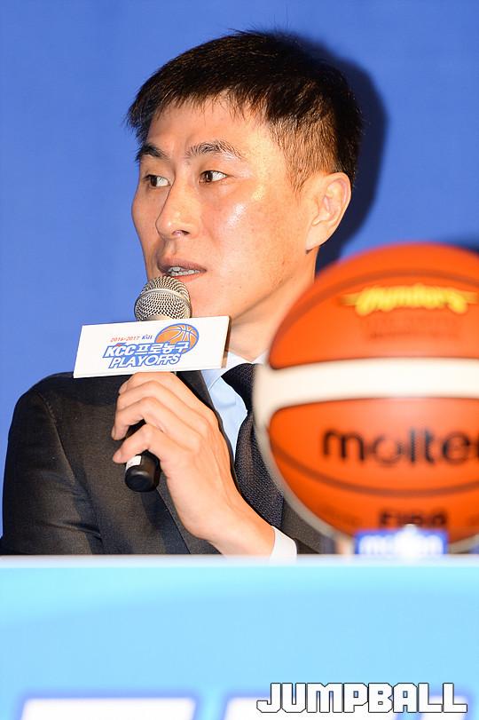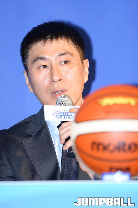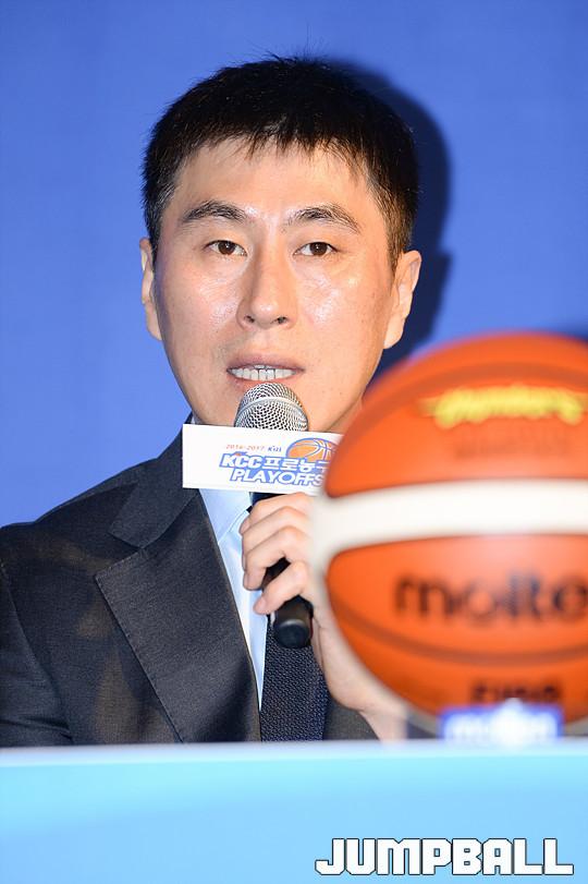 [점프볼=양재/유용우 기자] 28일 양재동 더케이호텔 크리스탈볼룸 에서 열린 '16-17 KCC 프로농구 플레이오프 미디어데이' 삼성 이상민 감독이 미디어 인터뷰를 하고 있다.