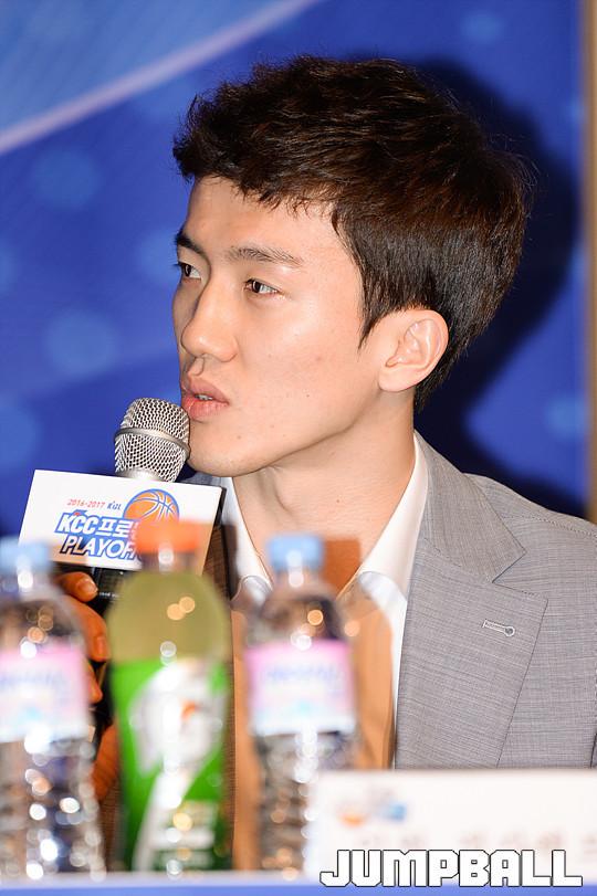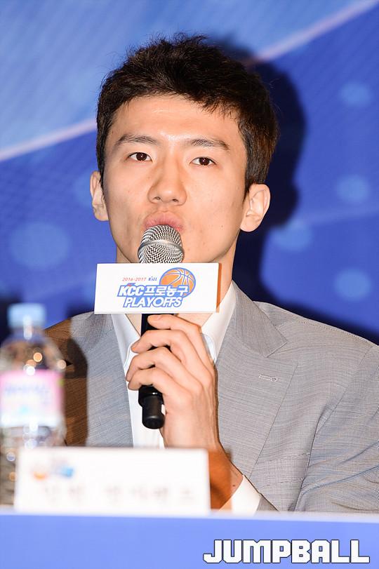 [점프볼=양재/유용우 기자] 28일 양재동 더케이호텔 크리스탈볼룸 에서 열린 '16-17 KCC 프로농구 플레이오프 미디어데이' 전자랜드 박찬희가 플레이오프 인터뷰에 임하고 있다.