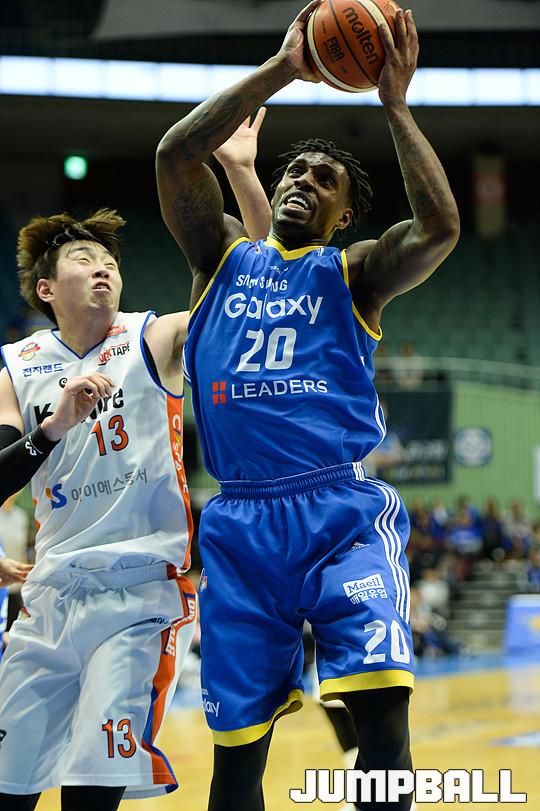 [점프볼=잠실/유용우 기자] 31일 잠실 실내체육관에서 열린 서울 삼성과 인천 전자랜드의 플레이오프 1차전 경기, 삼성 라틀리프가 리바운드를 잡고 있다.
