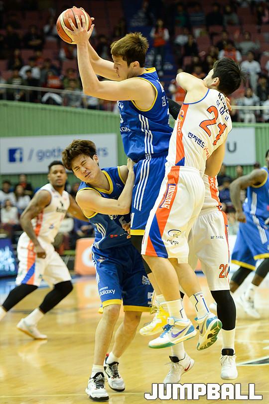 [점프볼=잠실/유용우 기자] 02일 잠실 실내체육관에서 열린 서울 삼성과 인천 전자랜드의 6강 플레이오프 2차전 경기, 삼성 김준일이 루즈볼을 잡고 있다.