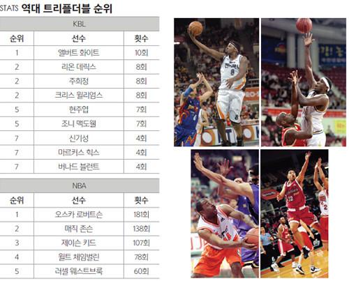 NBA(미국프로농구)는 우리보다 앞선 2001-2002시즌 일리걸 디펜스를 폐지했다. 다양한 형태의 지역방어와 압박수비를 기반으로 하는 수비전술도 나날이 발전하고 있다. 하지만 올 시즌 NBA는 트리플더블 풍년이라 불린다. 오클라호마시티 썬더의 러셀 웨스트브룩은 정규리그 72경기를 치른 현재 25개의 트리플더블을 올렸다. 뿐만 아니라 웨스트브룩의 평균기록 자체가 트리플더블이다(31득점 10.4리바운드 10.3어시스트).