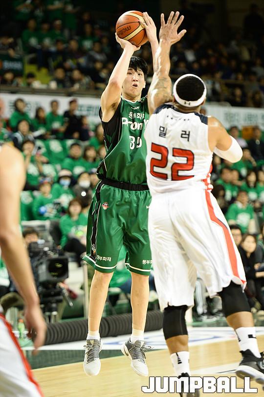 [점프볼=원주/유용우 기자] 03일 원주 종합체육관에서 열린 원주 동부와 울산 모비스의 6강 플레이오프 3차전 경기, 동부 서민수가 중거리슛을 쏘고 있다.
