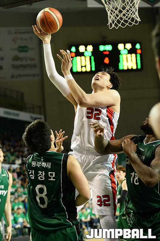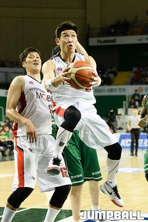 [점프볼=원주/유용우 기자] 03일 원주 종합체육관에서 열린 원주 동부와 울산 모비스의 6강 플레이오프 3차전 경기, 모비스 이종현이 골밑슛을 시도하고 있다.
