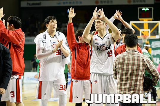 [점프볼=원주/유용우 기자] 03일 원주 종합체육관에서 열린 원주 동부와 울산 모비스의 6강 플레이오프 3차전 경기, 모비스가 77-70으로 동부에 승리하며 플레이오프 전적 3-0으로 4강전에 진출하며 1위팀 KGC 인삼공사와 경기를 치루게 되었다.