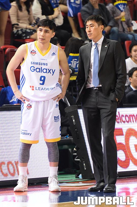 [점프볼=인천/유용우 기자] 04일 인천 삼산체육관에서 열린 인천 전자랜드와 서울 삼성의 6강 플레이오프 3차전 경기, 삼성 주희정과 이상민 감독이 이야기는 나누고 있다.