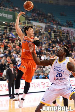 [점프볼=인천/유용우 기자] 04일 인천 삼산체육관에서 열린 인천 전자랜드와 서울 삼성의 6강 플레이오프 3차전 경기, 전자랜드 켈리의 공을 삼성 천기범이 스틸을 시도하고 있다.