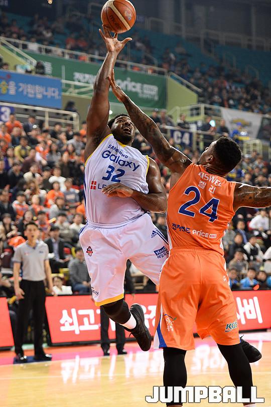 [점프볼=인천/유용우 기자] 04일 인천 삼산체육관에서 열린 인천 전자랜드와 서울 삼성의 6강 플레이오프 3차전 경기, 전자랜드가 삼성을 86-78로 승리하며 6강 플레이오프를 2-1로 리드하였다.