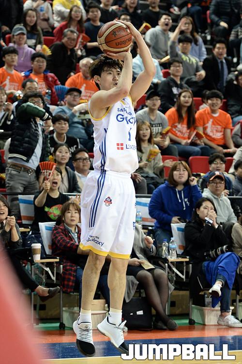 06일 인천 삼산체육관에서 열린 인천 전자랜드와 서울 삼성의 6강 플레이오프 4차전 경기, 삼성 이동엽이 3점슛을 시도하고있다.