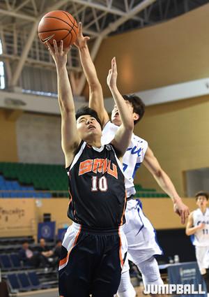 11일 신촌 연세대학교 체육관에서 열린 2017 남녀 대학농구리그에서 연세대와 조선대의 경기, 연세대 안영준이 거침없이 중앙을 파고들어 레이업을 시도하고 있다.