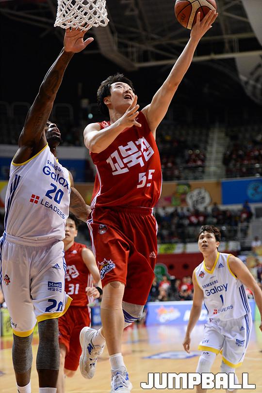 [점프볼=고양실내체/유용우 기자] 19일 고양 실내체육관에서 열린 고양 오리온과 서울 삼성의 4강 플레이오프 5차전 경기, 오리온 김진유가 레이업을 올리며 공격을 하고 있다.