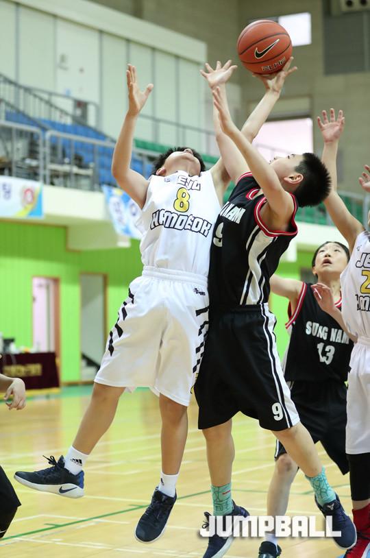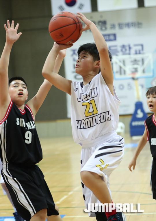 25일 강원 평창국민체육센터에서 열린 우리은행과 함께 하는 제16회 전국초등학교 농구대회 남초부 함덕초교와 성남초교의 예선 경기, 제주 함덕초교가 45-34로 부산 성남초교에 승리를 거두고 결선 진출에 유리한 고지에 올랐다.